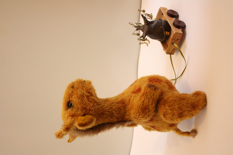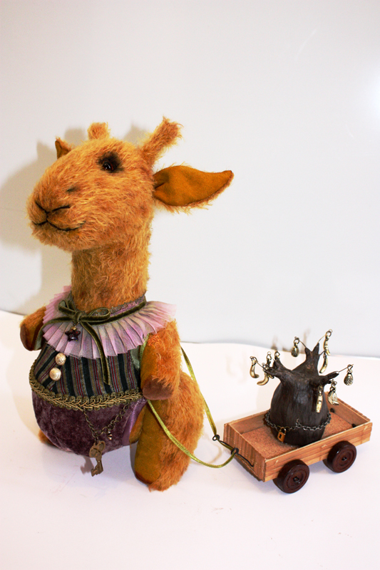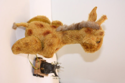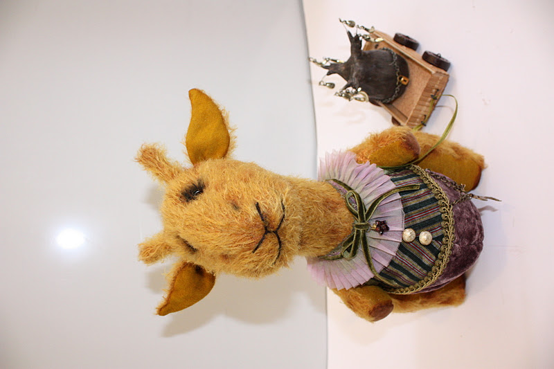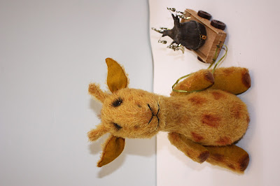Жираф: размер стоя 31 см , сидя - 28 см, мохер, искусств. мех, замша натуральная, набивка - стеклянный гранулят, опилки, синтепон. Глаза стеклянные, шплинтовые соединения, нитки мулине и ирис, тонировка масляными красками.